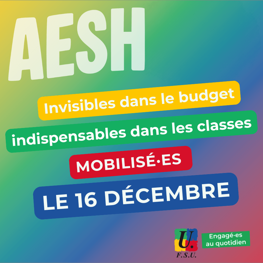 AESH : Invisibles dans le budget, indispensables en classe -> Mobilisé.es le 16 décembre ! Et dans la Drôme, un Stage FSU AESH qui tombe à pic ...