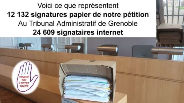 Le tribunal administratif de Grenoble doit rendre sa décision dans les tous prochains jours ! Une délégation du Comité de Défense et de Développement du Musée, du Comité Historique ainsi que leur avocat étaient présents à la séance du 27 novembre 2025 au Tribunal Administratif de Grenoble fort·es des 12 132 signataires papier ainsi qu’aux 24 609 signataires internet.
